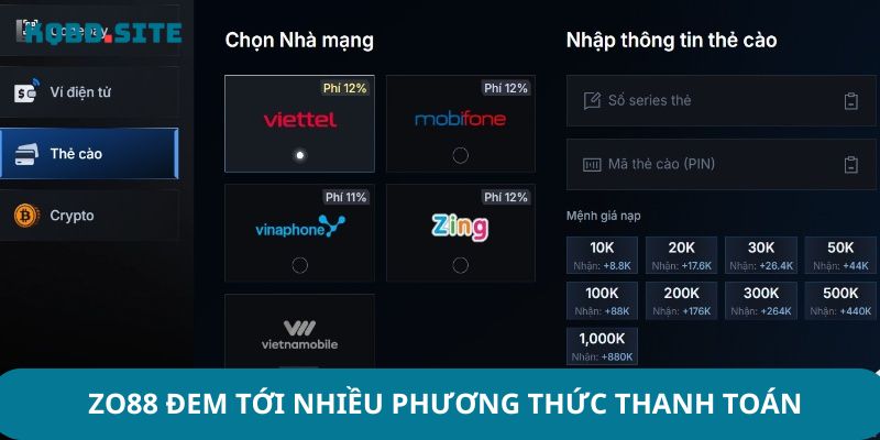 Chức năng multitable (chơi nhiều bàn/ứng dụng song song), đổi chip nhanh và chỉnh mức cược rộng phù hợp cả người chơi nhỏ lẫn đại lý lớn. Zo88 hợp tác với nhiều nhà phát triển game lớn nên slot, mini game cũng đa dạng – điểm mà nhiều web ăn xổi chưa dám đầu tư.